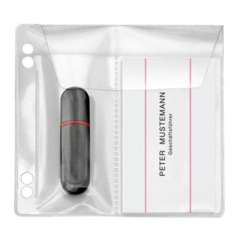 Die transparente PVC-Folie ermöglicht es Ihnen, den Inhalt der Hülle auf einen Blick zu erkennen. Die Hülle bietet Platz für entweder 2 USB-Sticks oder 1 USB-Stick und 1 Visitenkarte oder Speicherkarte, sodass Sie alle wichtigen Daten immer griffbereit haben.